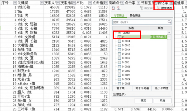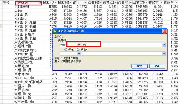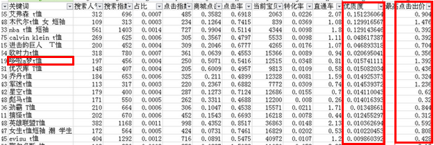 我們考慮直通車關(guān)鍵詞不虧本的情況下要做到:總毛利潤(rùn)(轉(zhuǎn)化率點(diǎn)擊量商品單品毛利)總推廣費(fèi)用(PPC點(diǎn)擊量);從而得到:PPC轉(zhuǎn)化率單品毛毛利,直通車關(guān)鍵詞才不會(huì)虧錢。通過①②兩個(gè)公式篩選女裝t恤的關(guān)鍵詞:  首先我們選出一批關(guān)鍵詞,先剔除沒用的0轉(zhuǎn)化的關(guān)鍵詞,篩掉一部分詞。  刪除不相關(guān)的關(guān)鍵詞,選詞更精準(zhǔn)  然后用之前的①②公式,將關(guān)鍵詞進(jìn)行排序,篩選出優(yōu)質(zhì)度高,點(diǎn)擊扣費(fèi)接近關(guān)鍵詞最高點(diǎn)擊出價(jià)的詞。為什么這么說呢,優(yōu)質(zhì)度高那么說競(jìng)爭(zhēng)小,接近關(guān)鍵詞最高出價(jià)說明有利于我們優(yōu)化。