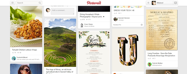 Google+和Pinterest的主導(dǎo)航欄會(huì)固定在頁面頂部,這樣用戶就能在有需要時(shí)快速使用菜單項(xiàng)和篩選器。如果再配合上無限制滾動(dòng)模式,跟隨式導(dǎo)航菜單可以在用戶滾動(dòng)幅度超過一個(gè)頁面時(shí)帶來極大的方便。
