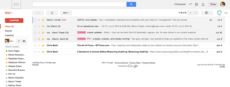Gmai就是單頁應(yīng)用的一個(gè)很好的例子,其將多項(xiàng)操作融入了一個(gè)單獨(dú)的“頁面”中。單頁設(shè)計(jì)的趨勢是這一UI模式中相對不太高端的一種實(shí)現(xiàn)方式,在這一設(shè)計(jì)模式下,所有內(nèi)容均可通過同一頁面訪問。這一模式可以讓瀏覽變得更快、響應(yīng)更迅速,從而讓桌面與web應(yīng)用之間的界限不再如此分明。