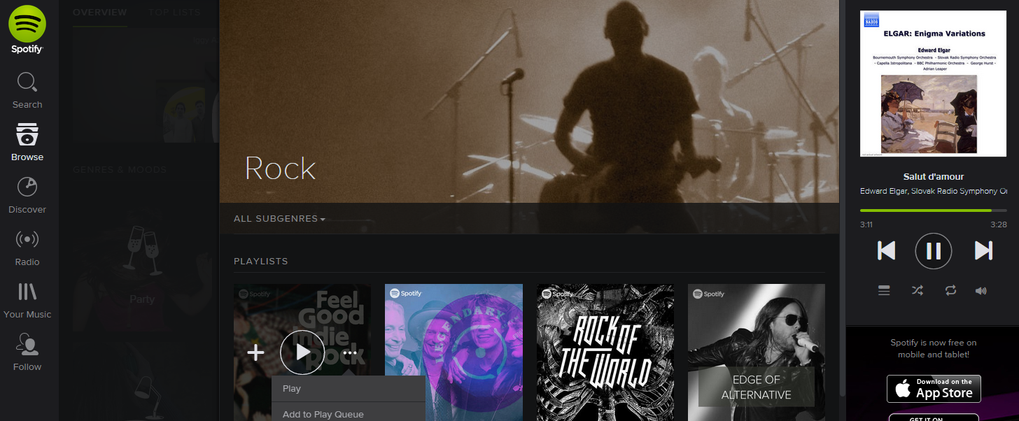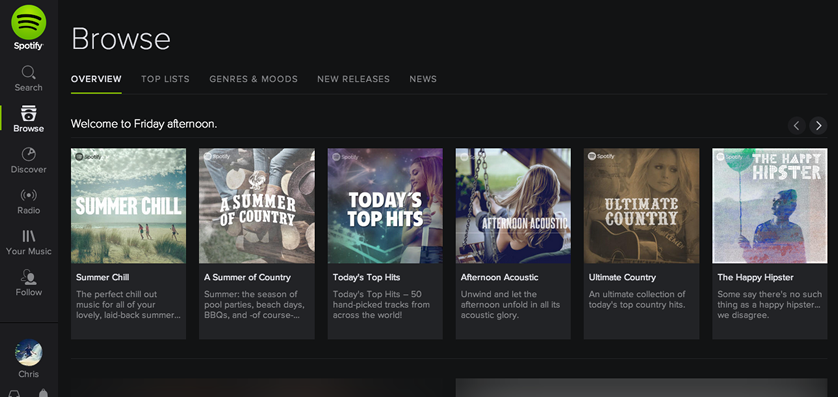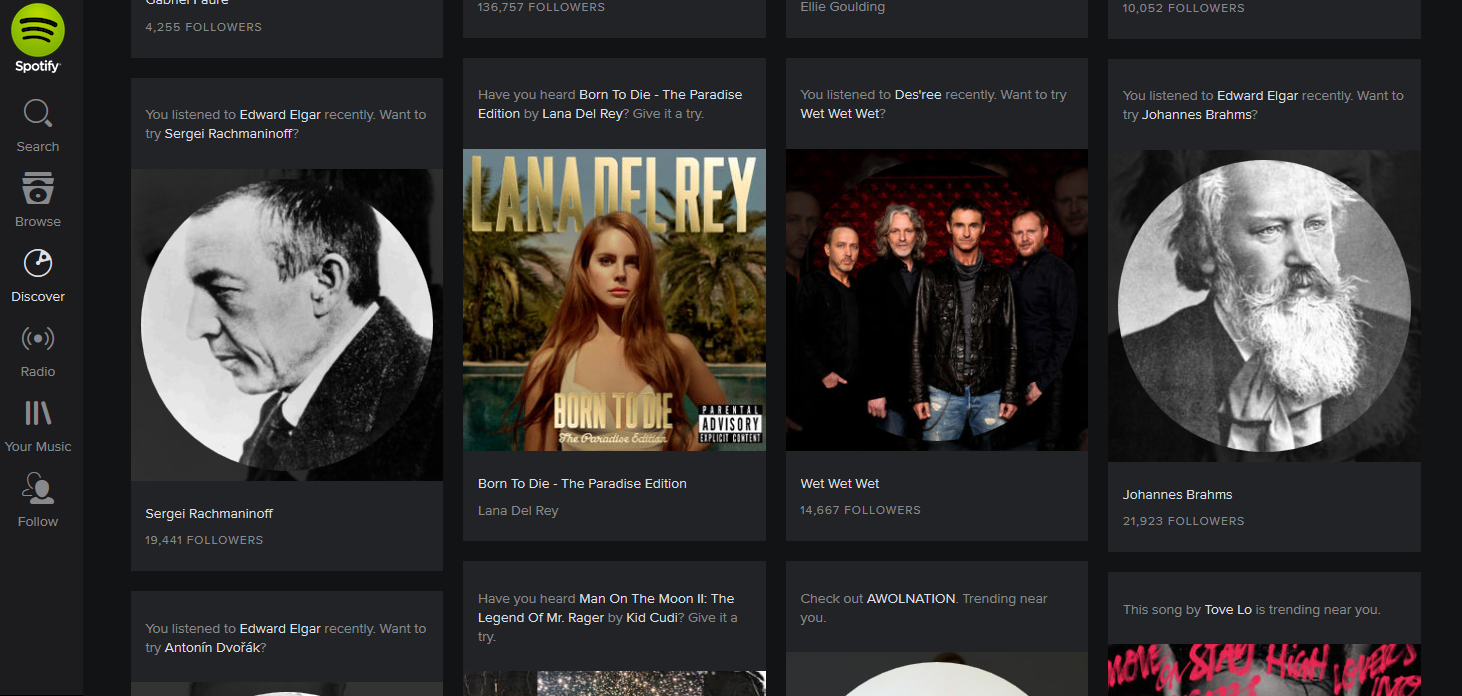 對于Spotify等web應(yīng)用,考慮到用戶有時(shí)會(huì)在背景播放音樂的同時(shí)瀏覽其他音樂,這時(shí)單頁應(yīng)用模式的重要性就愈發(fā)凸顯,通過使用單頁應(yīng)用,用戶就無需對頁面進(jìn)行重新加載,也不會(huì)造成音樂停止播放。