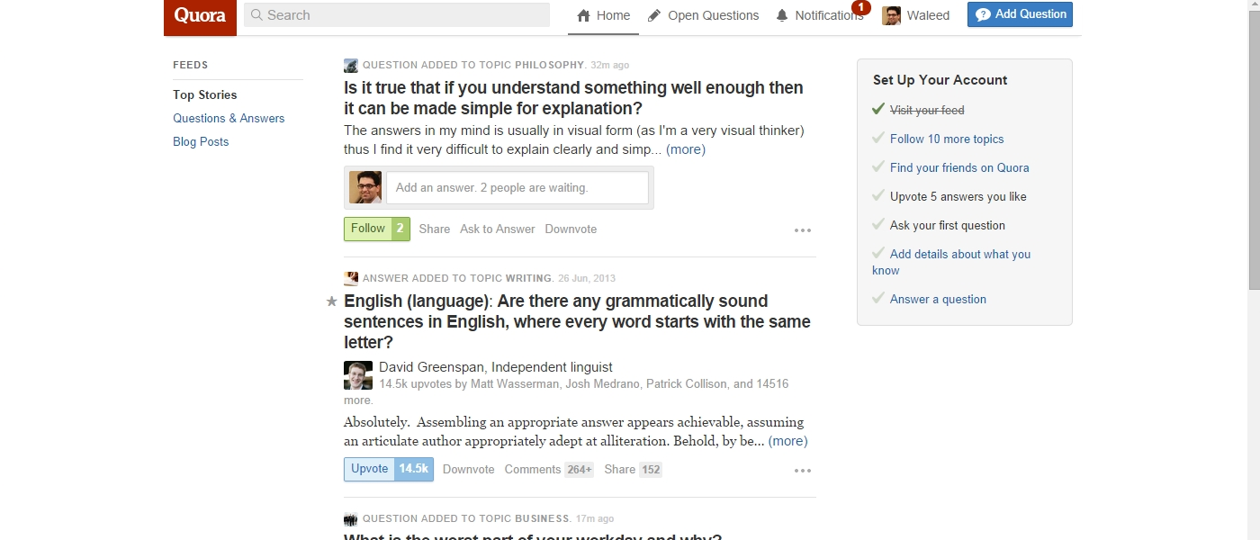 解決方案:為用戶提供一份明確的后續(xù)步驟清單以便他們相應(yīng)執(zhí)行,進(jìn)而獲得更深入的體驗(yàn)。舉例來說,在填寫個(gè)人資料時(shí),Quora會(huì)為用戶創(chuàng)建一份“操作步驟表”以便他們對照操作。LinkedIn則會(huì)將所有可以讓用戶添加到個(gè)人資料里的部分以列表形式展現(xiàn)出來,同時(shí)還提供一個(gè)完整度標(biāo)尺來激勵(lì)用戶繼續(xù)填寫。