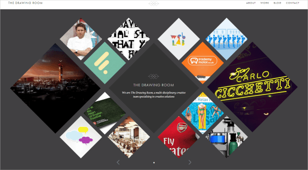 個人非常喜歡這個布局,簡單但又不失有趣。這家工作室將自己的作品以大小不同,相互堆砌的菱形展示于頁面之上。最中央的菱形為公司標志,表現(xiàn)并不突兀,不會分散對作品的注意力。把鼠標懸停在任意一個菱形上時,其中會顯示該作品的說明介紹。這個簡單的單頁網(wǎng)站布局簡約而不失創(chuàng)意,同時使用簡單方便。
