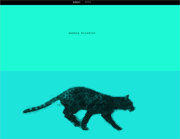 Andrew McCarthy的作品集采用了獨具一格的布局方式。頁面上充斥著彩色的條帶,有關設計師的詳細信息則需要向下滾動鼠標查看。滾動鼠標時,會有一個像素化的貓形定格動畫隨之運動。這一簡單的創(chuàng)意所帶來的動感讓我大愛不已。另外,這個網(wǎng)站也需要依仗用戶的交互操作。