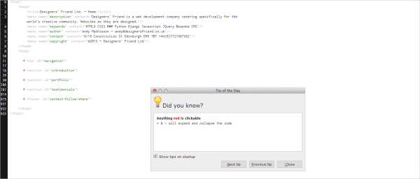 跟你腦子里想的設計師網(wǎng)站有點不一樣是吧。Designer's Friend看起來更像是網(wǎng)站背后的HTML代碼。你所需知道的所有內(nèi)容都含在代碼里,標簽則是標題。其中“Tip of the Day”這個方框的設置非常巧妙,其能夠引導用戶瀏覽整個網(wǎng)站。