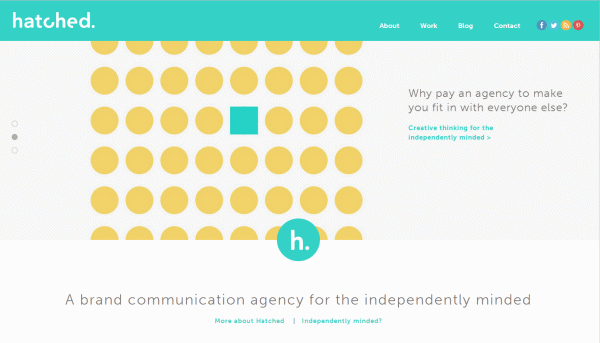 Hatched 的布局之精髓在于橫跨整個屏幕的導航欄和各個部分,這一布局既大膽又開放。其響應式的導航欄非常有趣。如果在小屏幕上,看起來就會有點笨拙,但如果在這里,其導航欄(包括社交網(wǎng)絡按鈕)僅占了一個菜單按鈕的空間。