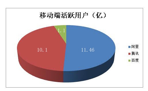 在對BAT在移動端活躍用戶數(shù)量統(tǒng)計時,由于手機淘寶并沒有公開數(shù)據(jù)可以查詢,于是通對手機淘寶在360手機助手、百度手機助手、豌豆莢等主流APP分發(fā)平臺的下載量粗略計算,手過機淘寶達到9.56億,支付寶錢包活躍用戶數(shù)量已達1.9億,總計達到11.46衣;手機qq與微信(含WeChat)月活用戶累計超10億;百度移動搜索月活用戶1億,百度錢包僅為千萬級別。從移動月活用戶數(shù)量來看,百度對阿里、騰訊根本無法構(gòu)成威脅,后者阿里與騰訊之間可謂旗鼓相當。