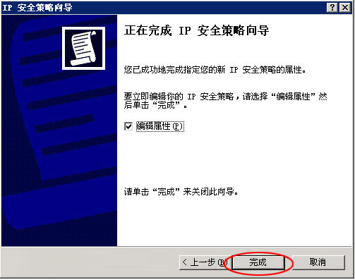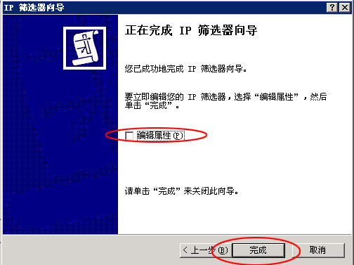 第二十一步:在完成IP篩選器中不選中編輯屬性,然后點完成