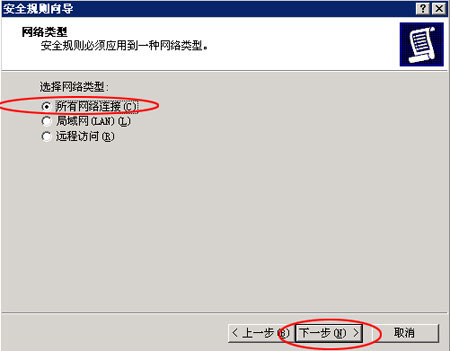 第十二步:在網(wǎng)絡(luò)類型中選擇“所有網(wǎng)絡(luò)連接”,并點下一步