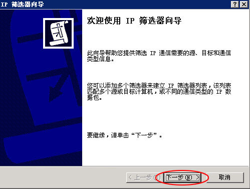 第十五步:在歡迎使用IP篩選向?qū)е兄苯狱c擊下一步