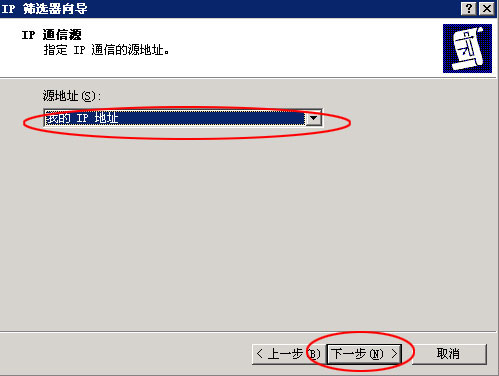 第十七步:在IP通信源中的源地址選擇“我的IP地址”,并點下一步