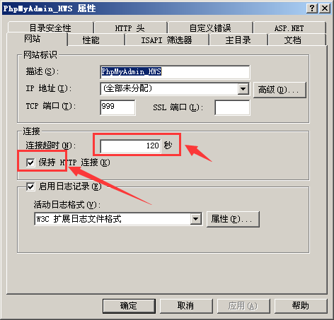 在“網(wǎng)站”選項卡的“連接”部分,清除“保持 HTTP 連接”復選框。